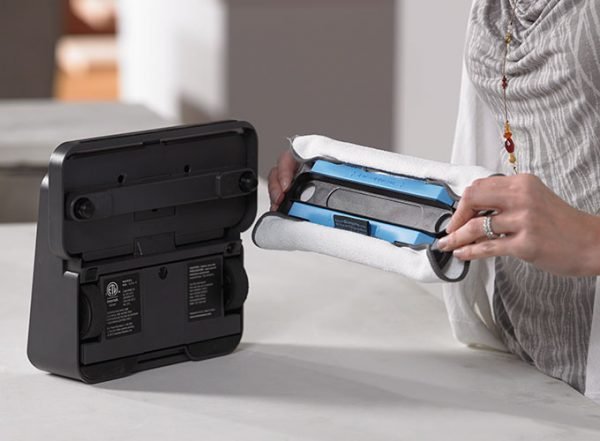 La batería recargable durará hasta cuatro horas de limpieza en seco y hasta dos horas y media de limpieza húmeda con una sola carga. La batería se carga en tan solo cuatro horas con el adaptador o en solo dos horas con la base de carga Turbo.